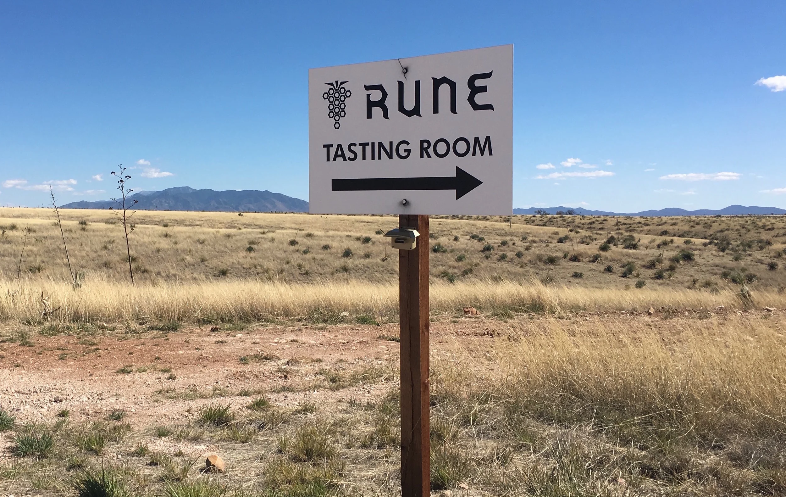 After that, we took a drive down the main road, headed to Elgin. It's a beautiful, scenic drive and we stopped to take pictures before turning around. We planned on just staying in Sonoita this visit. On our way back we saw flags with the name RUNE wines on it and I remembered that this winery had a cool, open air tasting room, so we drove in.