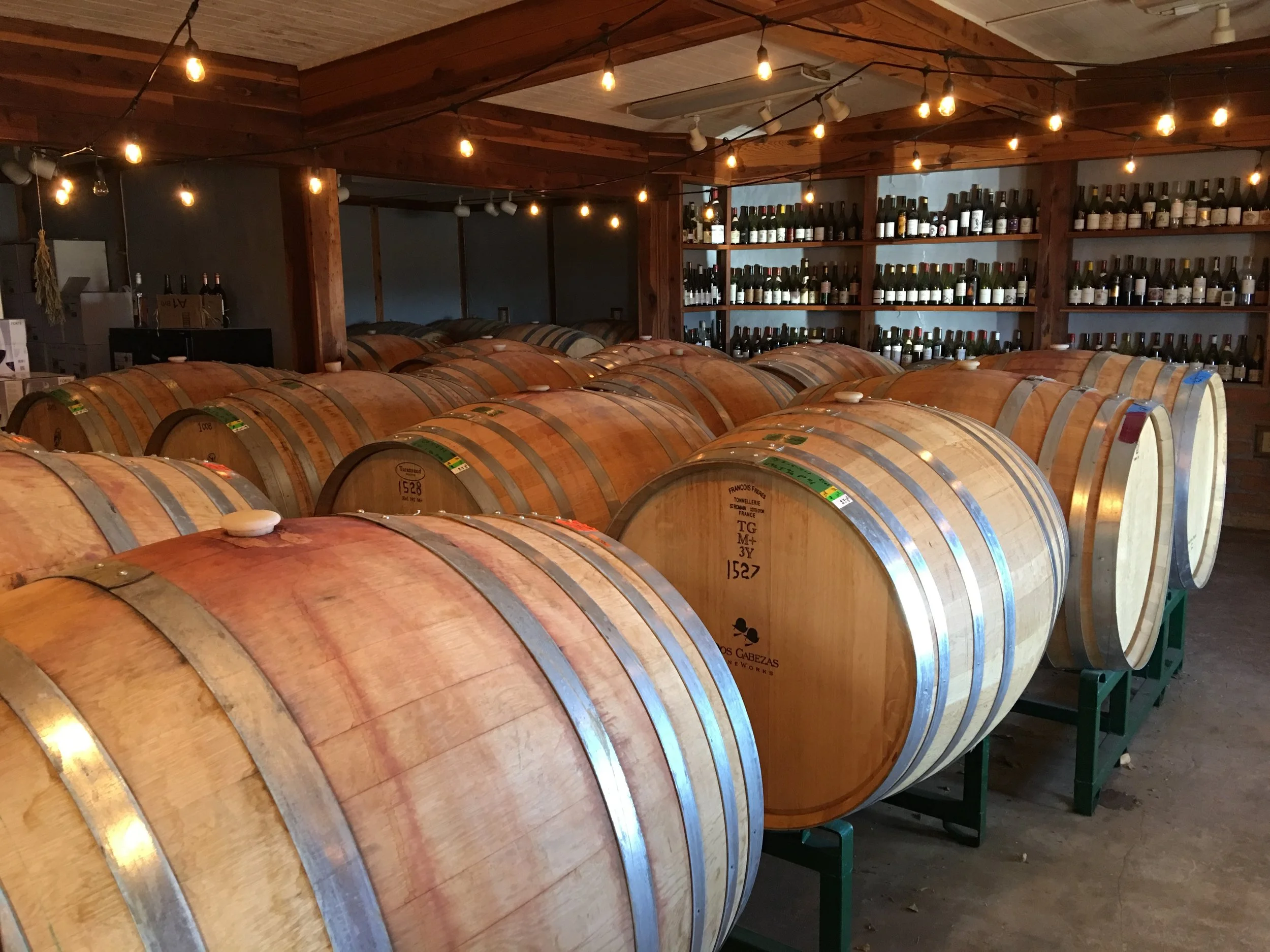 Our first stop was Dos Cabezas, one of my favorite wineries. Not only is their Pink a great Rose but they have amazing red and white wine varieties too. The tasting room is cool, literally and figuratively, but also simplistic. The copper bar and photos of the winery, along with their family, make the space inviting. The barrel room is also eye catching.